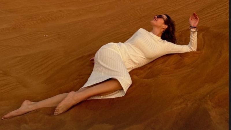 Güzel oyuncu, ilginç dans videoları serisine bir yenisini daha ekledi ve bu sefer dansını Dubai kumlarında yaptı.