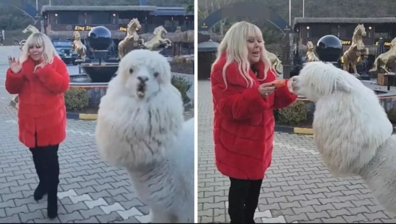 Soyman ve alpakanın videosu, kısa sürede sosyal medyada gündem oldu.