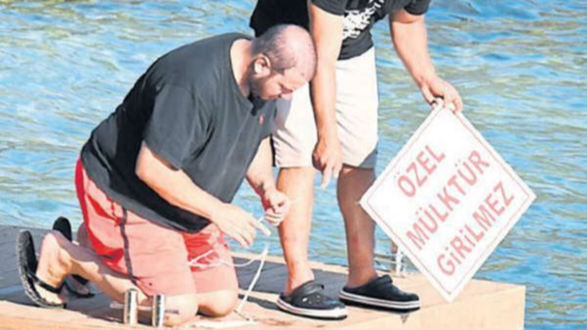 Akşam saatlerine yakın teknesinden ayrılıp yeni evine geçen Şahan Gökbakar’ın ilk işi “Özel mülktür girilmez” tabelası asmak oldu. Gelen teknelerden rahatsız olan Gökbakar, her yere tabeladan astı.