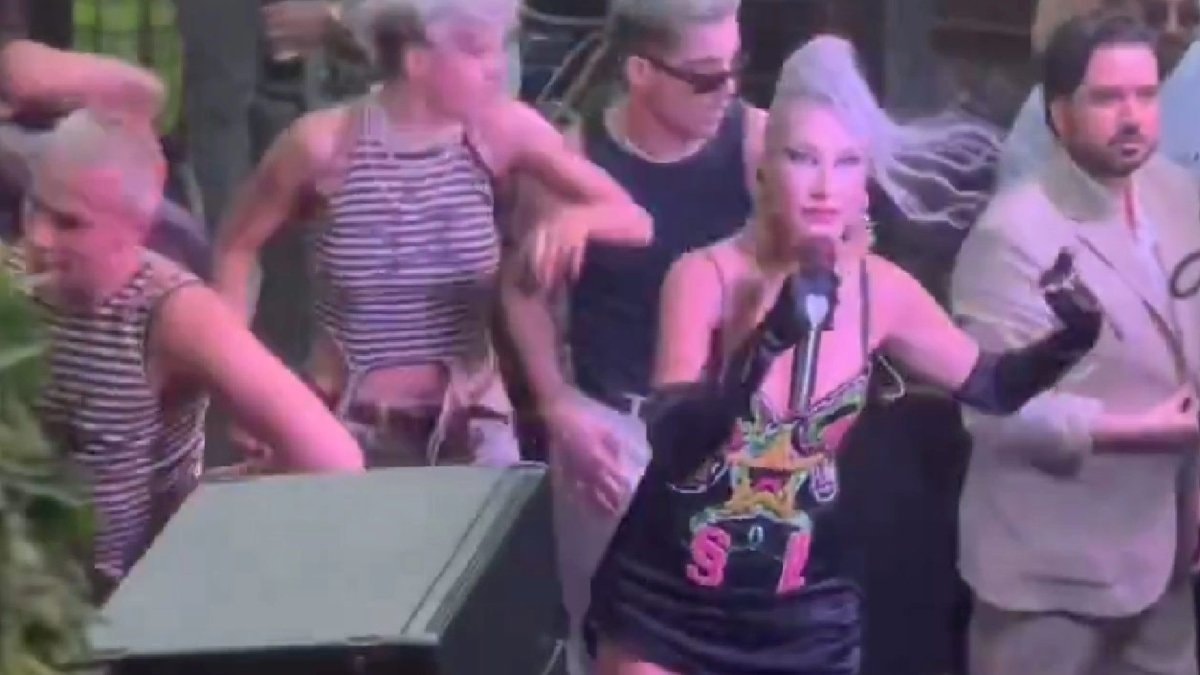 Yener, şarkılarını seslendirirken talihsiz bir olay yaşadı. Sahnede düşen şarkıcıyı dansçıları ayağa kaldırdı.