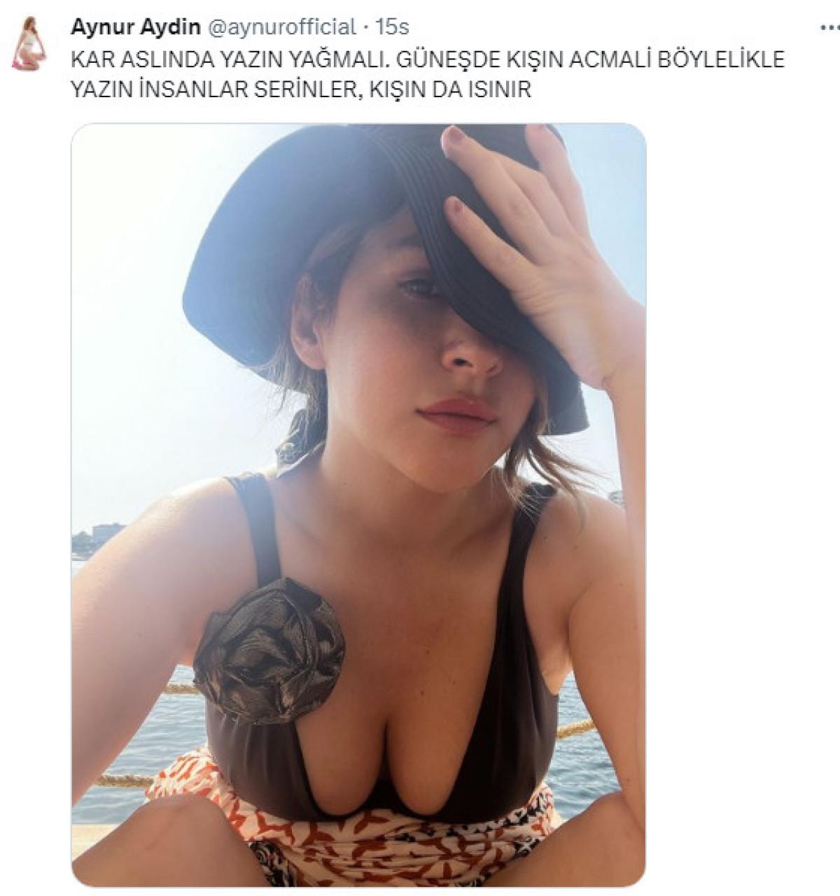 Şarkıcı, X (Twitter) hesabından, "Kar aslında yazın yağmalı. Güneş de kışın açmalı. Böylelikle yazın insanlar serinler, kışın da ısınır." diye yazdı.