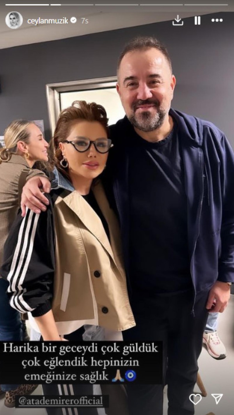 Çektirdiği fotoğrafı sosyal medya hesabından yayınlayan Ceylan, "Harika bir geceydi çok güldük, çok eğlendik, Hepinizi emeğine sağlık." notunu düştü.