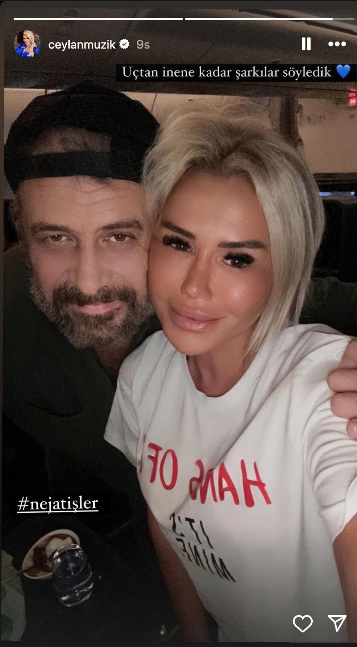 Nejat İşler ile çektiği selfieyi paylaşan Ceylan, "Uçaktan inene kadar şarkılar söyledik." yazdı.
