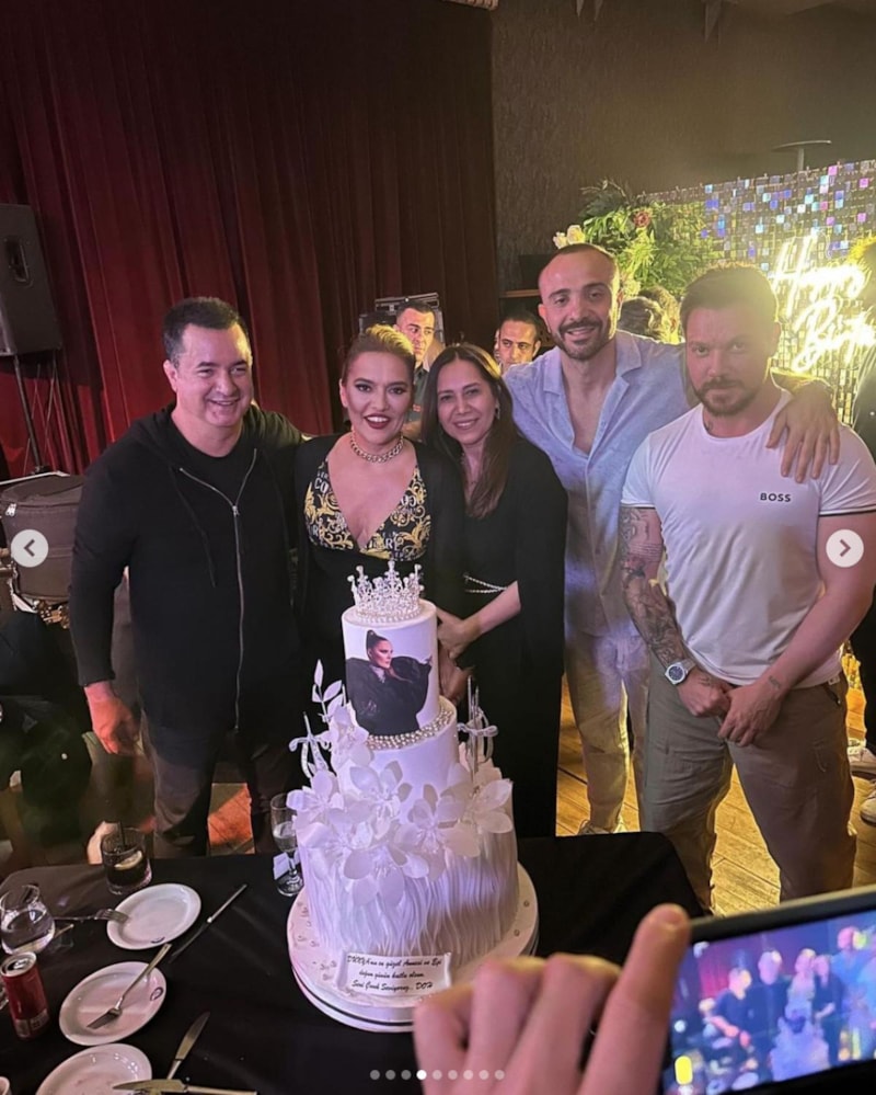 Okan Kurt ile romantik danslarının ardından Acun Ilıcalı ve Feraye Tanyolaç ile pastasını kesen Akalın, Erkal Sonel’in şarkılarıyla da bol bol oynadı.