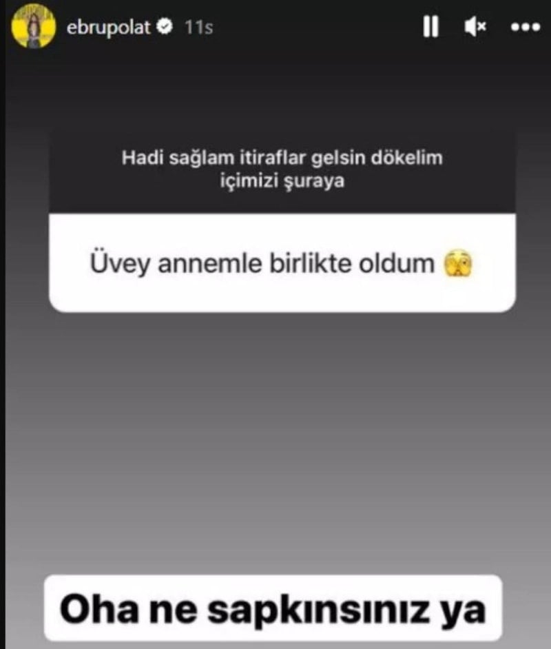 Bir takipçi, Ebru Polat'a "Üvey annemle birlikte oldum." mesajı attı. Polat ise bunu paylaşarak "Oha ne sapıksınız" dedi.