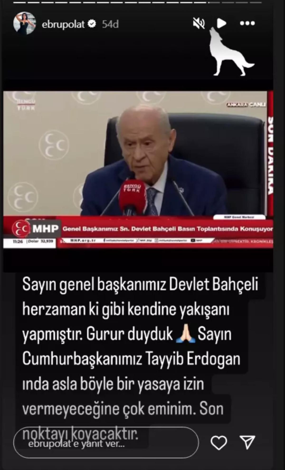 Yasaya ilk günden beri tepki gösteren şarkıcı Ebru Polat da Bahçeli'yi destekleyerek şunları yazdı: