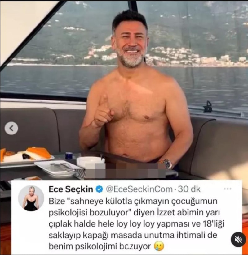 Daha önce Yıldızhan tarafından eleştirilen Ece Seçkin, "Bize 'sahneye külotla çıkmayın çocuğumun psikolojisi bozuluyor' diyen İzzet Abime bakın!" diyerek şunları söyledi: "İzzet abimin yarı çıplak halde hele loy loy loy yapması ve 18’liği saklayıp kapağı masada unutma ihtimali de benim psikolojimi bozuyor."