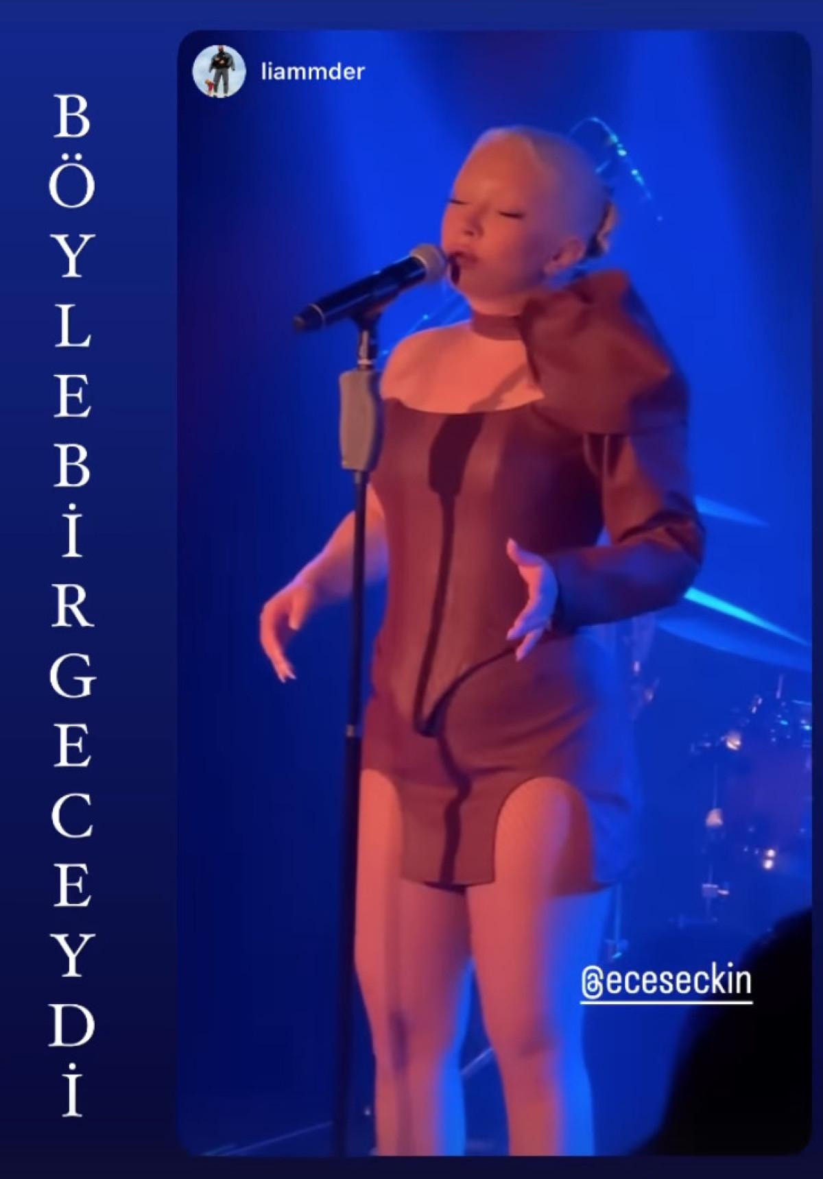 Ece Seçkin şimdi de sahne tarzıyla gündem oldu. Kahverengi tonlarda iki parçadan oluşan bir kıyafet giyen Seçkin, bu defa beğenilmedi. Mini eteğinin iki tarafında bulunan yırtmacıyla da dikkat çeken ünlü isme yorum yağdı.