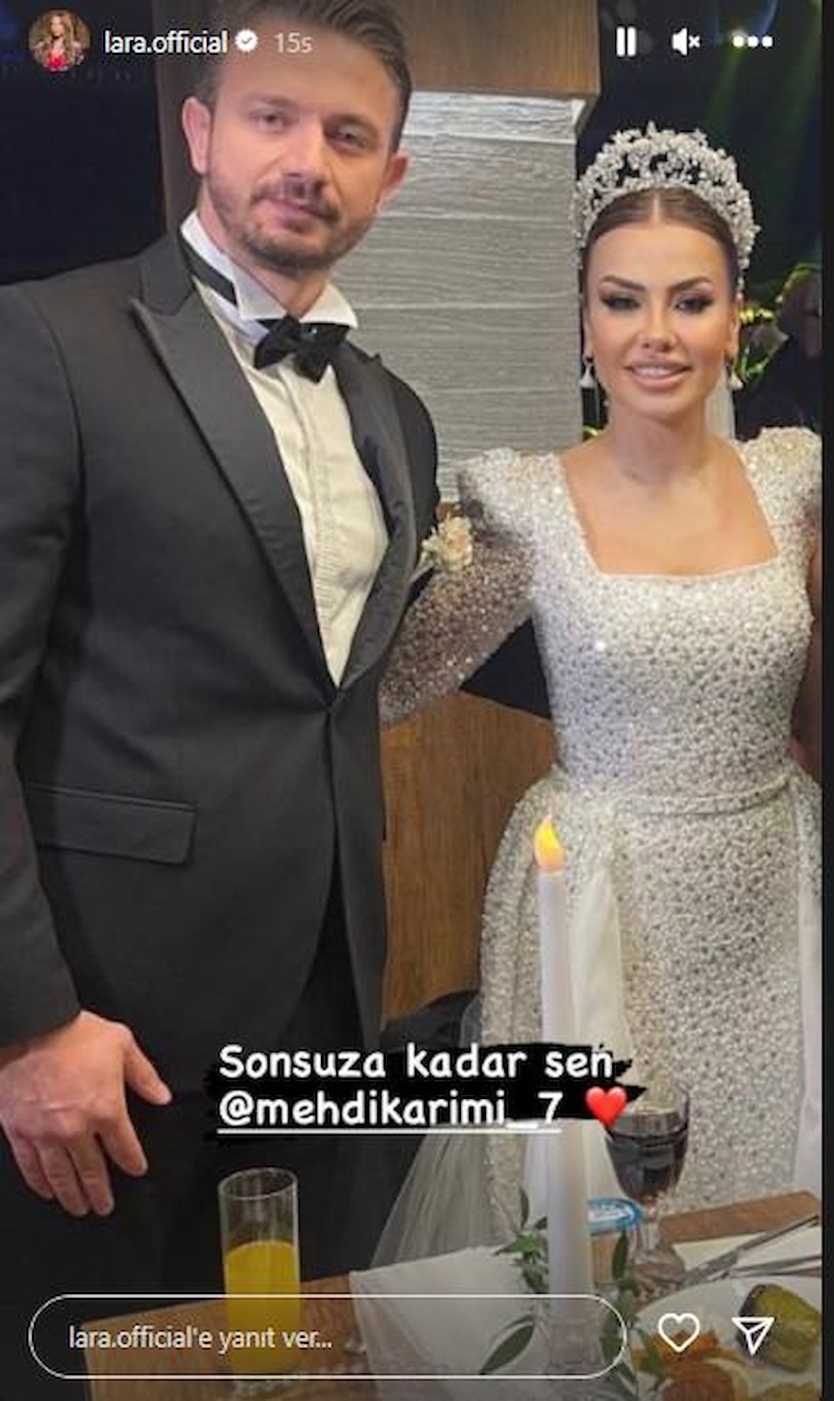 Lara ve Mehdi Karimi, 7 Mart Salı günü nikah masasına oturmuştu. Güzel haberi duyuran ünlü şarkıcı paylaştığı fotoğrafların altına şu notu düşmüştü: