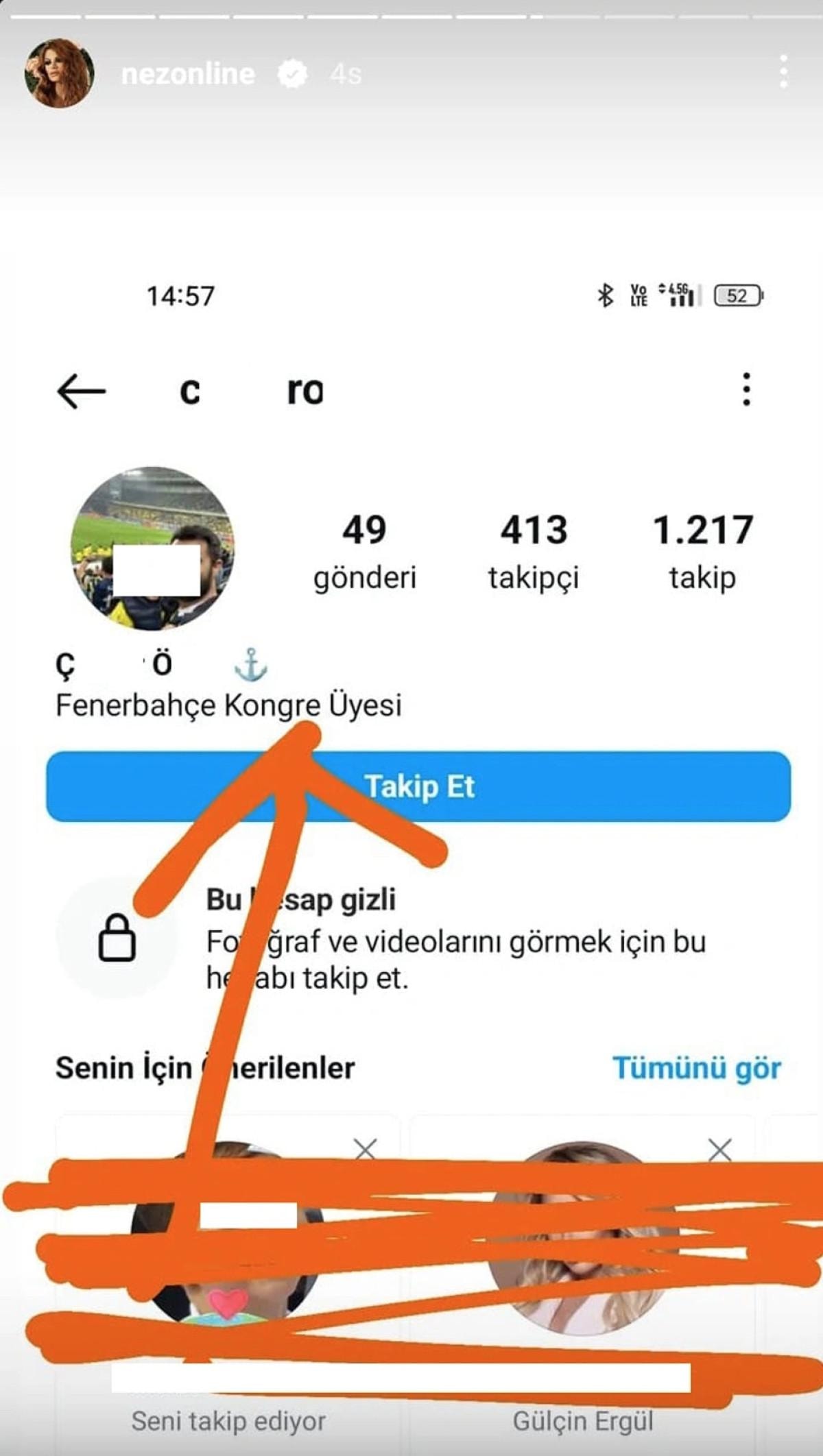Fenerbahçe kongre üyesi olduğunu iddia eden bir kişi, Nez'e “3 bi -4 bin dolara neler olabilir mesela Nez Hanım” şeklinde mesajlar attı.