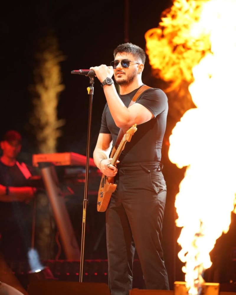 Sahnesine birkaç dakika ara veren ünlü isim, ezan okunduktan sonra şarkıclarını söylemeye devam etti.