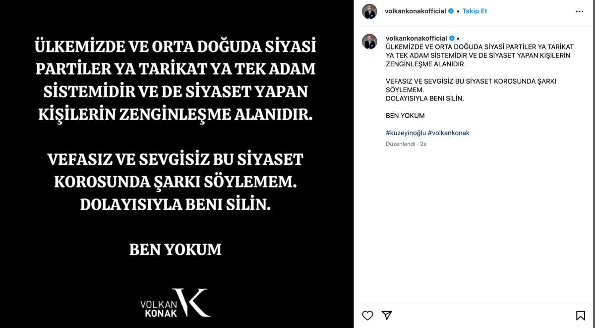 Şarkıcı Konak şimdi de başka bir paylaşımıyla gündeme geldi. Son paylaşımıyla gündem olan Konak, şunları yazdı: