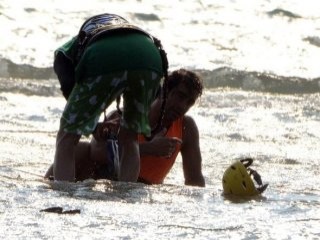 Yeni başladığı kitesurf, az daha Sarp Levendoğlu'nu hastanelik ediyordu. Sığ suda hızlanan oyuncu, dengesini kaybedip düşünce çenesini kayaya çarptı.
