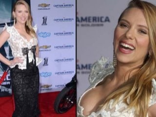 Fransız nişanlısı Romain Dauriac ile ilk bebeğini bekleyen 29 yaşındaki Johansson, başrollerinden birini üstlendiği Captain America: The Winter Soldier adlı filmin Hollywood'daki dünya prömiyerine katıldı.
