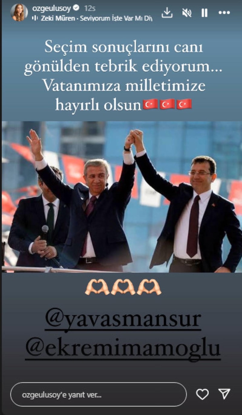 Bir kez daha İstanbul Büyükşehir Belediyesi (İBB) Başkanı Ekrem İmamoğlu seçildi. Ünlü isimler de seçim sonrası sosyal medyadan paylaşımlarda bulundu.