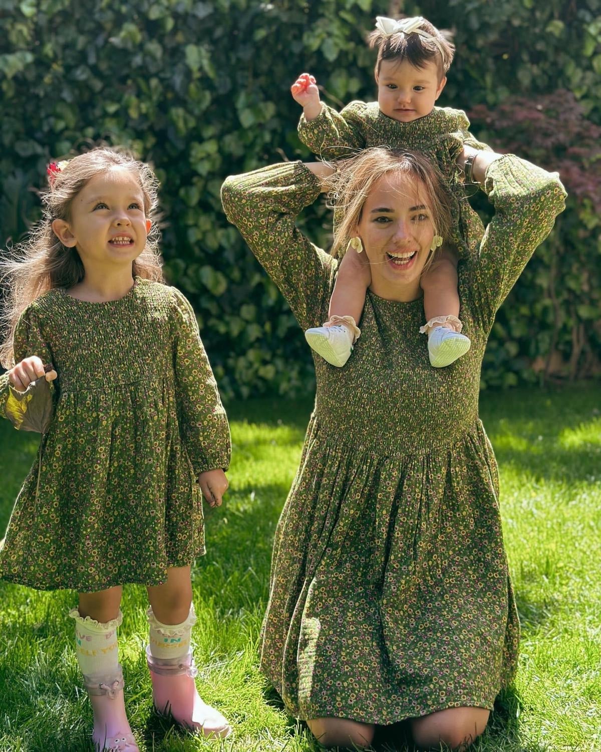 Çocuklarıyla birlikte aynı kombini yapan oyuncu, birbirinden renkli karelerini takipçilerinin beğenisine sundu.