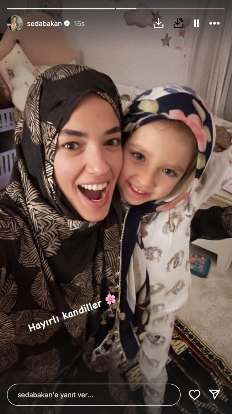Ünlü oyuncu Seda Bakan, önceki akşam Instagram hesabı üzerinden kandil ile ilgili bir paylaşım yaptı. Bakan, kızı ile yaptığı paylaşımda başörtülü ve seccadesi üzerinde poz verdi.