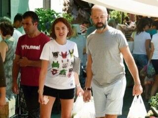 Yanına eşi Ali Güzel'i de alan oyuncu, Bodrum'da köy pazarına gitti.