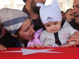 Hakkari’de şehit düşen 26 yaşındaki Uzman Çavuş Muammer Faruk Salgar’ı, eşi ve 9 aylık bebeğiyle son yolculuğuna uğurlandı.