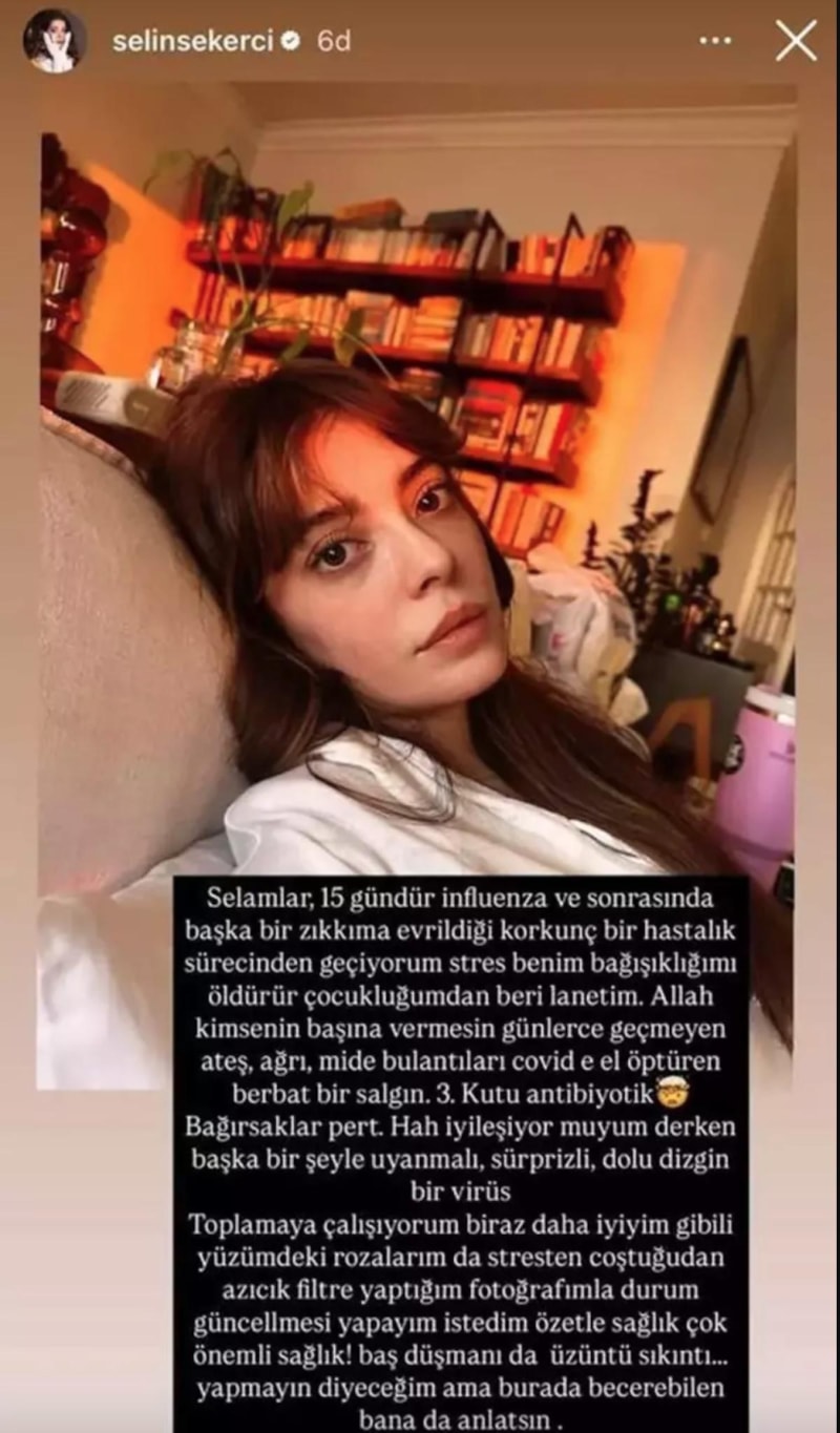 Selin Şekerci, Instagram hesabından yaptığı paylaşımla hem influenza hem de stres kaynaklı sağlık sorunlarını yaşadığını söyledi.