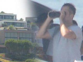 Bir ara dürbünle bir siteyi inceleyen Bilgili, daha sonra ailesiyle deniz ve güneşin tadını çıkardı.