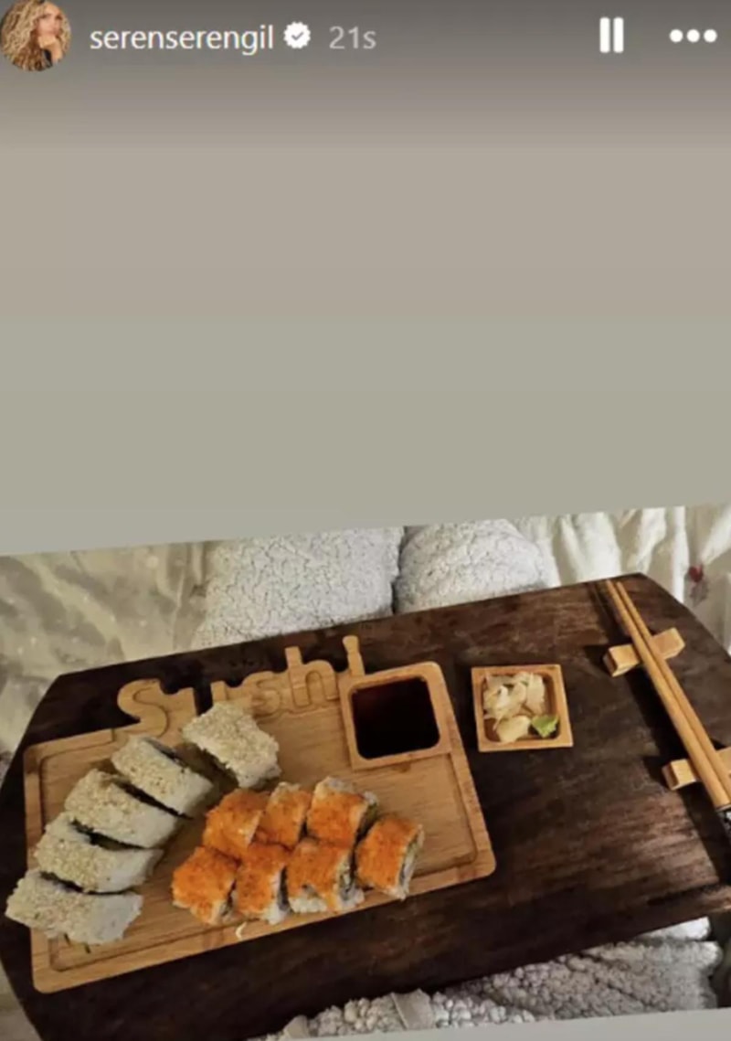 Serengil'in hasta yemeği olarak sushi paylaşması ise sosyal medyada gündem oldu.