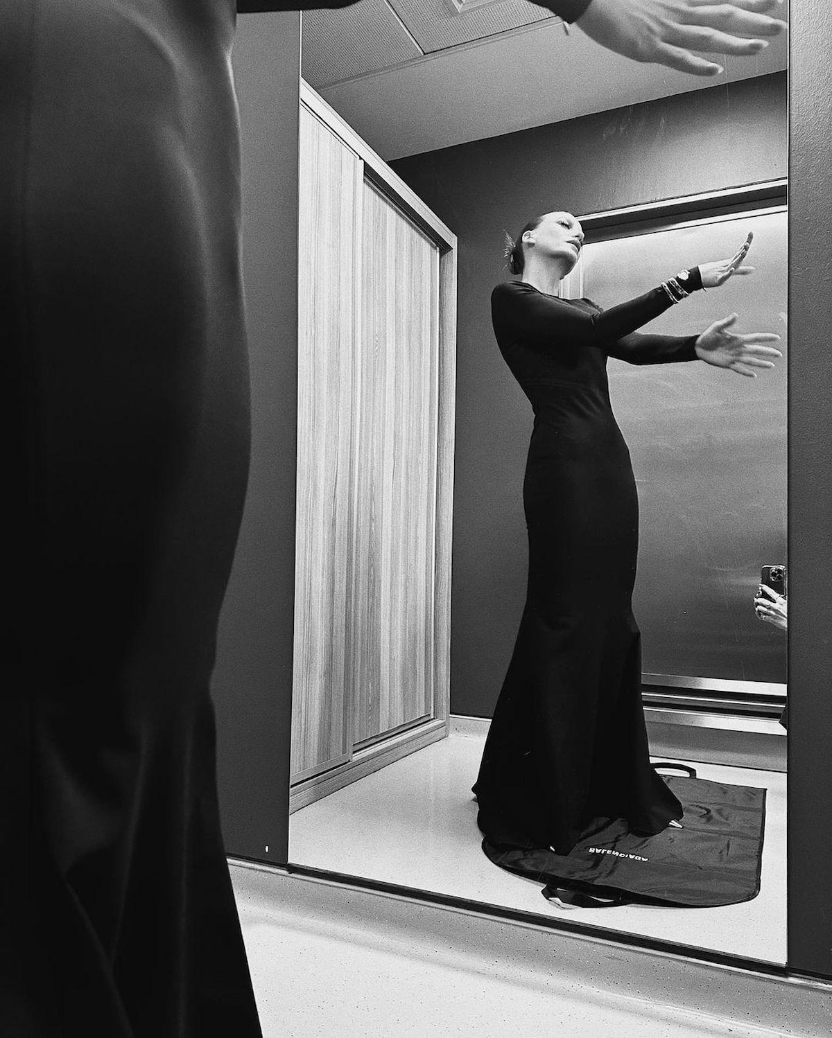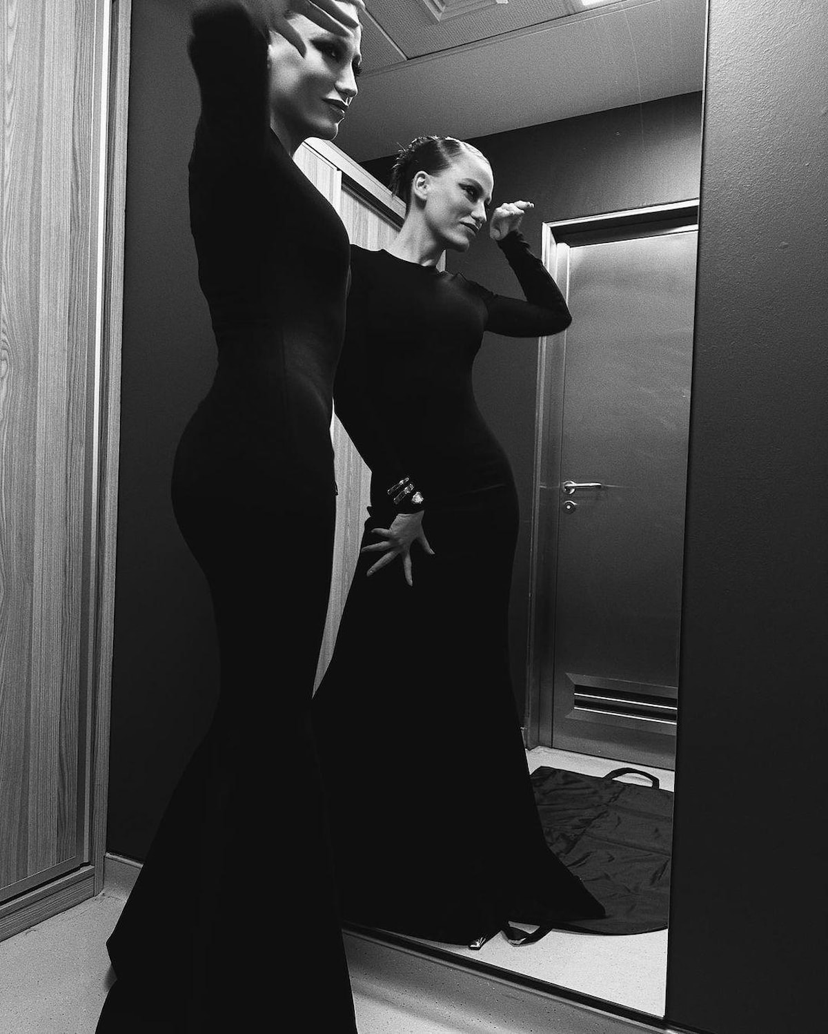 Siyah elbise giydi