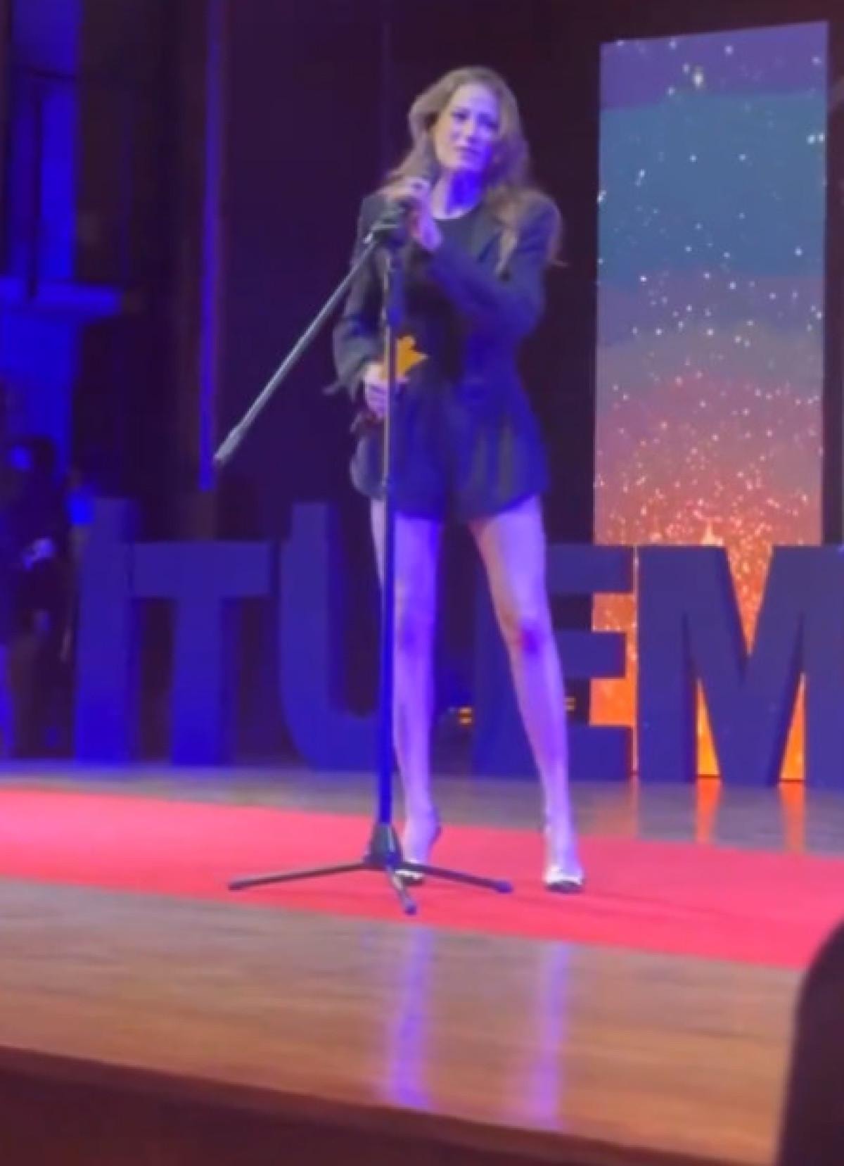 İTÜ EMÖS Başarı Ödülleri'nde 'Yılın En Başarılı Kadın Oyuncusu' ödülünü alan Sarıkaya ödül gecesi tarzı ve sahneye çıkış anı ile olay yarattı. Geceye süper minisiyle katılan Serenay Sarıkaya bacak boyuyla dikkat çekti.