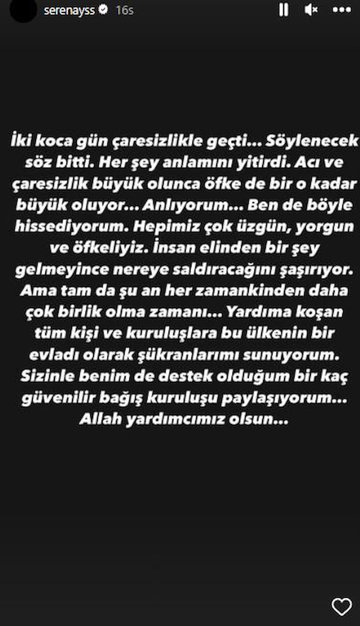Yaşananlar karşısında çaresiz ve üzgün hissettiğini söyleyen Serenay Sarıkaya, takipçilerine içini döktü: