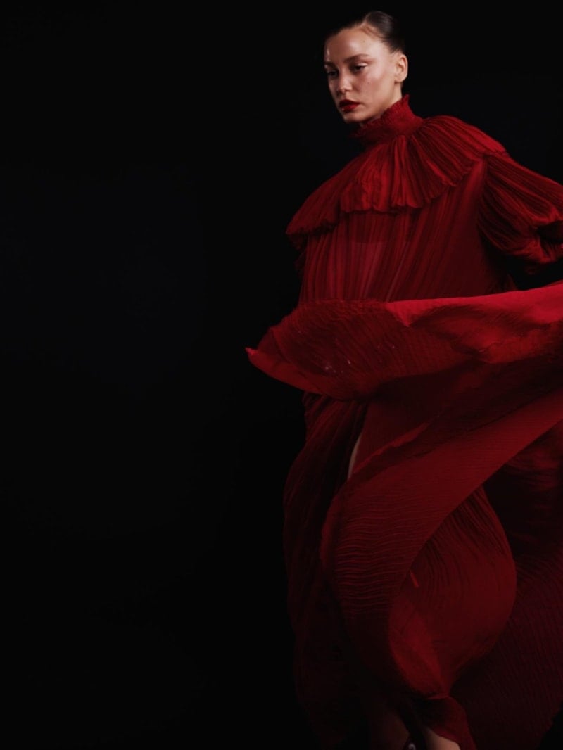 Yine kural bozmayan Sarıkaya, güzelliğiyle herkesi mest etti. Geceye kırmızılar içerisinde katılan güzel oyuncu; kırmızı kürkü, kırmızı derin yırtmaçlı elbisesi ve kırmızı rujuyla adeta bakana bir daha baktırdı.