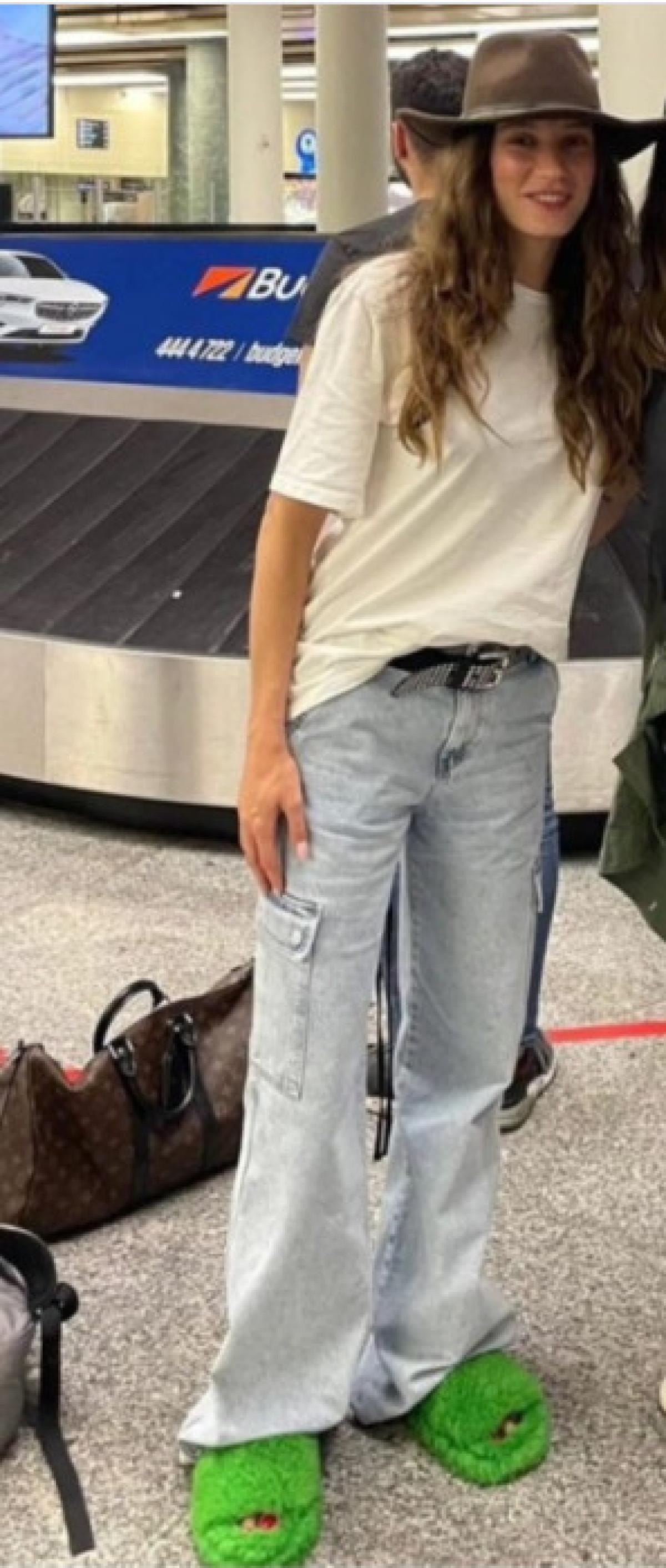 Havalimanında karşılaştığı hayranlarını kırmayarak fotoğraf çektiren Serenay Sarıkaya, sıcak havaya rağmen tercih ettiği yeşil tüylü terlikleriyle dikkat çekti. Oyuncu terlikleriyle kısa sürede alay konusu oldu.