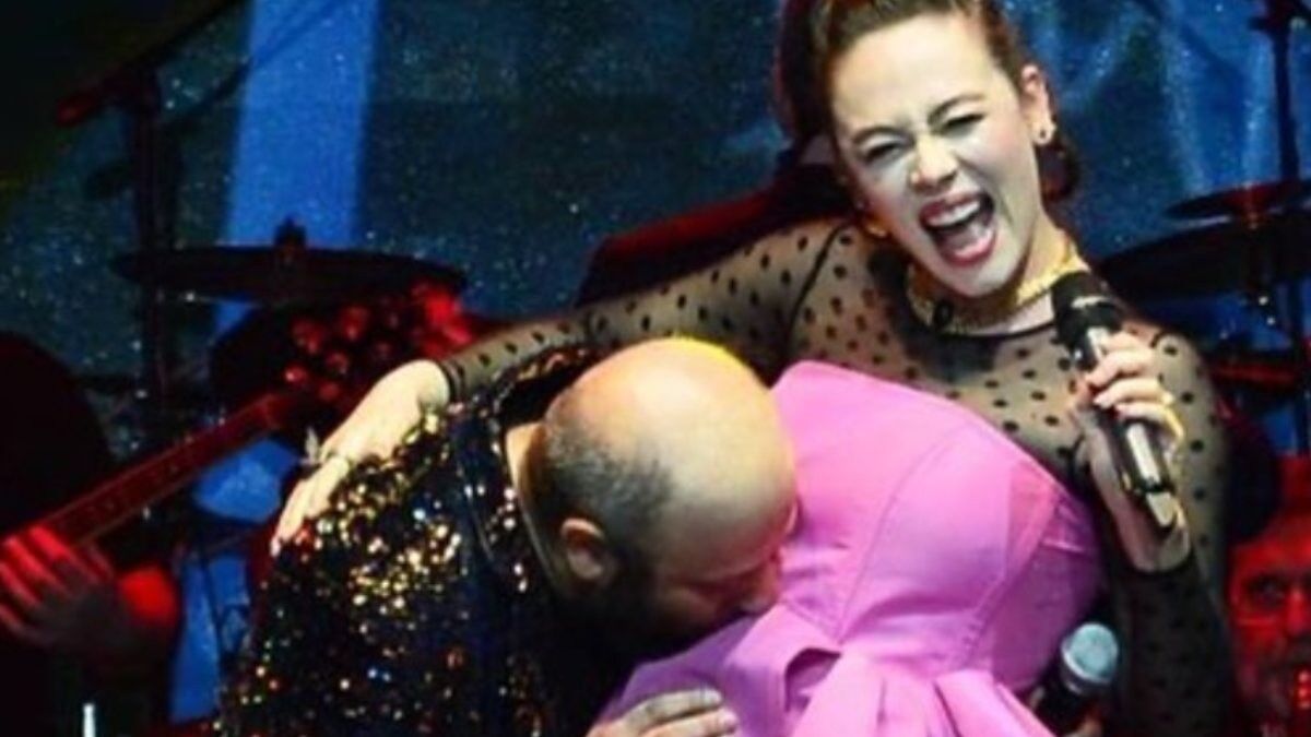 Serkan Keskin, bir ara 4 aylık hamile olan Demet Evgar'ı karnından öptü. İkilinin bu eğlenceli anları geceye damga vurdu.