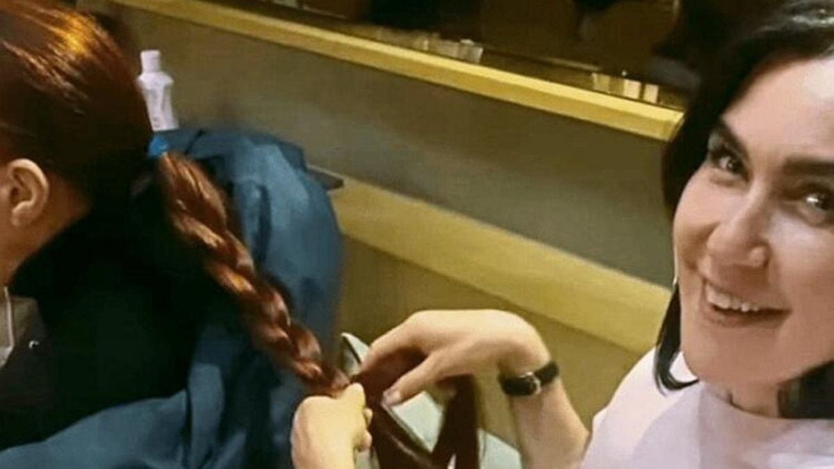 Anne-kız yemek yedikten sonra Şevval Sam, Leman Sam'ın saçlarını örmeye başladı.