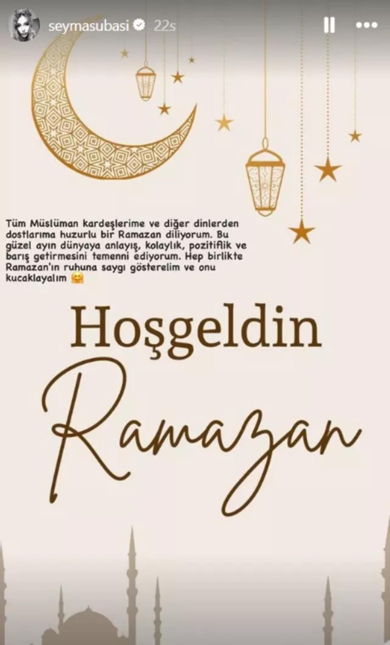 Subaşı, 2.8 milyon takipçisi bulunan Instagram hesabının hikayeler bölümünden Ramazan'la ilgili bir paylaşım yaptı. Subaşı, paylaşımında şunları ifade etti: