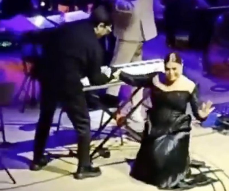 Ünlü şarkıcı, performans sırasında dengesini kaybederek düştü.