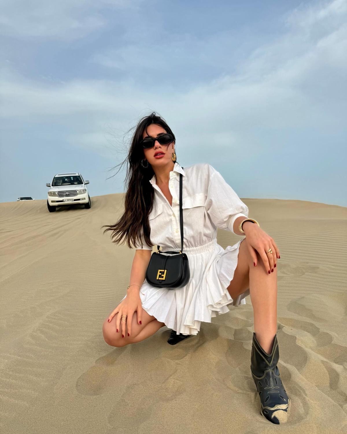 Her tatilinde olduğu gibi ünlü çift, bu seyahatlerinden de kareleri sosyal medya hesabından yayınladı. Ünlü çiftin çölde aşk karelerine takipçilerinden beğeni ve yorum yağdı.