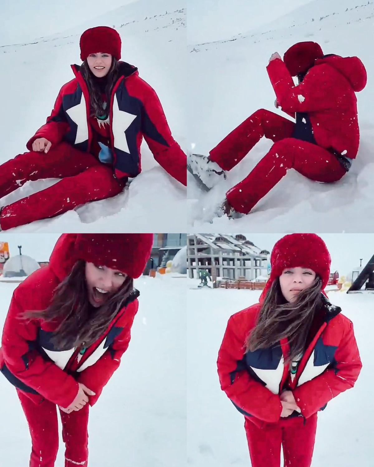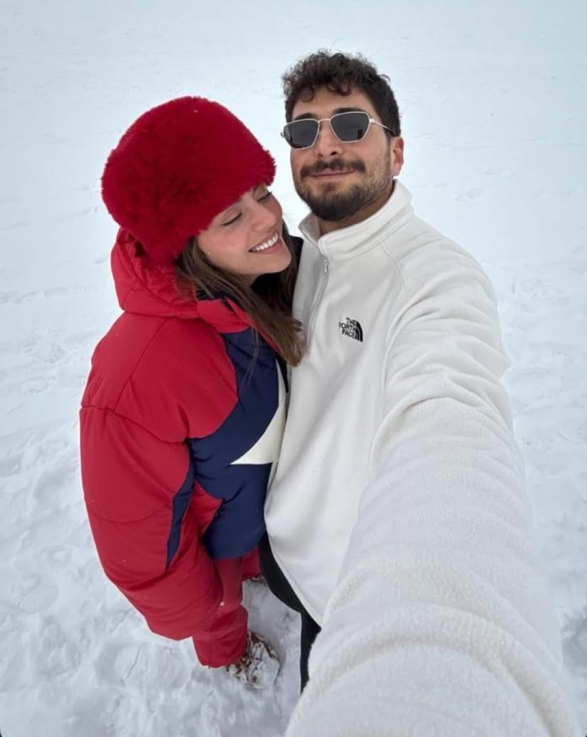 Çift, kış tatilinin keyfini çıkararak kar topu savaşı yaparken eğlenceli anlar yaşadı. Ata Ayyıldız, bu anları sosyal medya hesabında takipçileriyle paylaştı.