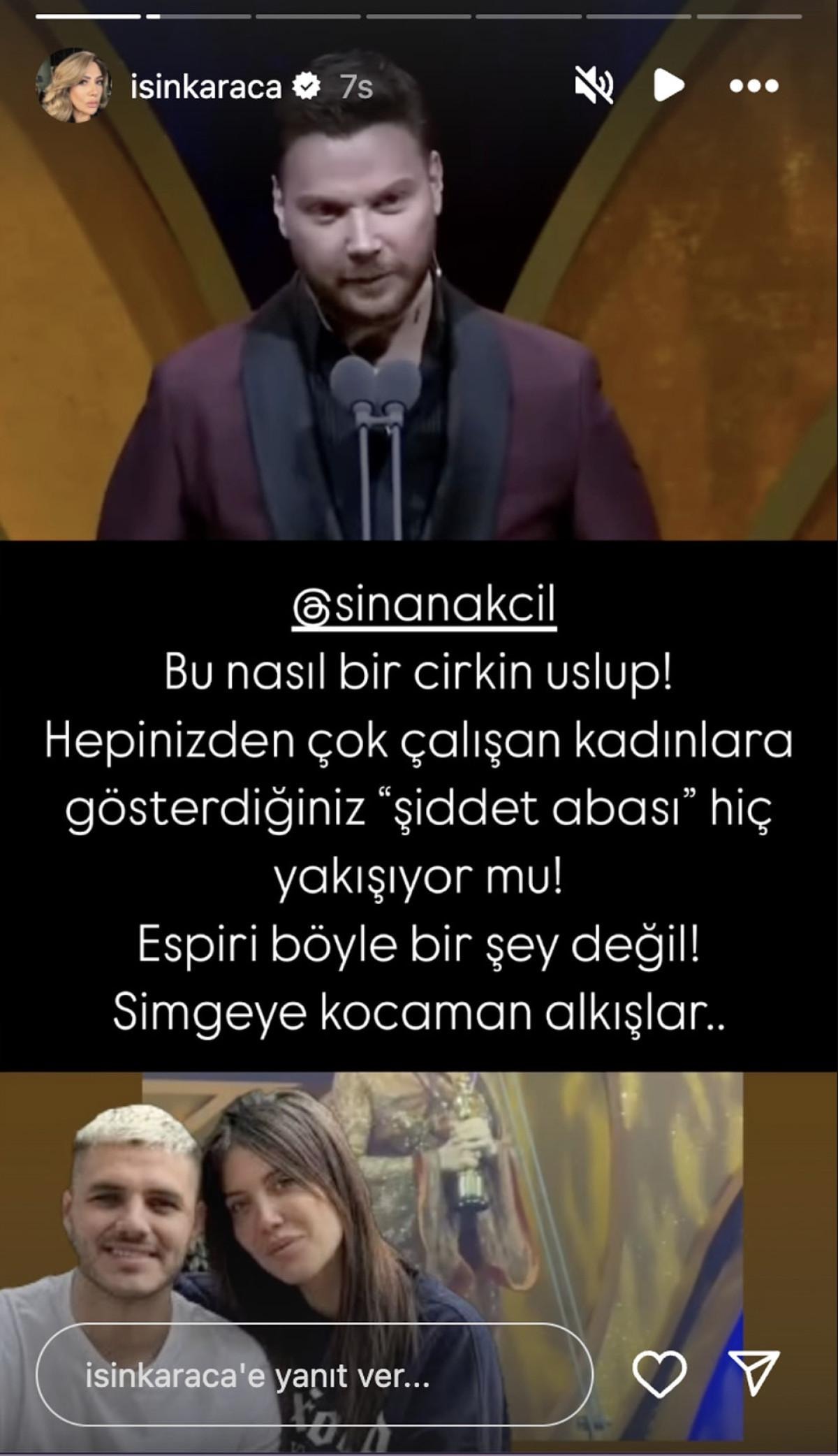 Şarkıcı Sinan Akçıl, sahnede konuşma yaparken kendini tutamayarak önce güldü ardından ise Icardi göndermesi yaptı. Akçıl, Simge'yi anons ederken, "Wanda Nara çok üzülecek ama Simge Sağın" dedi.