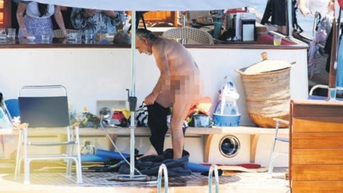Sinan Çetin, uzun bir deniz sefasının ardından denizden çıkarak teknenin ortasında mayosunu değiştirirken görüntülendi. Çetin'in, o sırada teknede bulanan insanlara aldırış etmeyişi dikkat çekti.