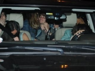 6 kişi olmalarına rağmen tek arabaya sığmayı başaran gruptan bazıları, flaşlar patlayınca yüzünü gizledi.
