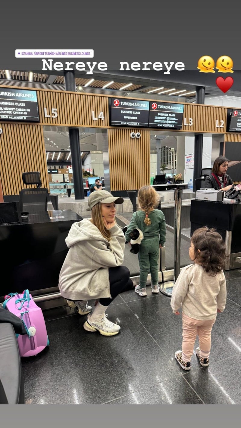 Kobal, eşi ve iki kızıyla kış tatiline çıktı. Havalimanından da kareler paylaşan ünlü isim, "İlk uzun uçuş denememiz bol şansınızı alırım." notunu ekledi.