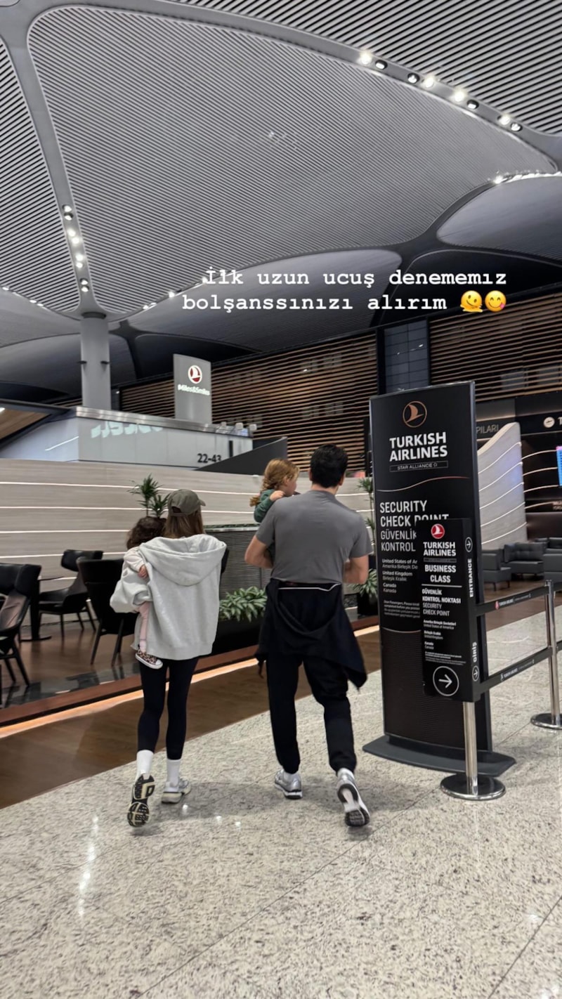 2 çocuk annesi oyuncu Sinem Kobal, sosyal medya hesabından ailecek tatile çıktıkları anı paylaştı. Kobal, ilk kez uzun uçuş yapacaklarının notunu ekledi