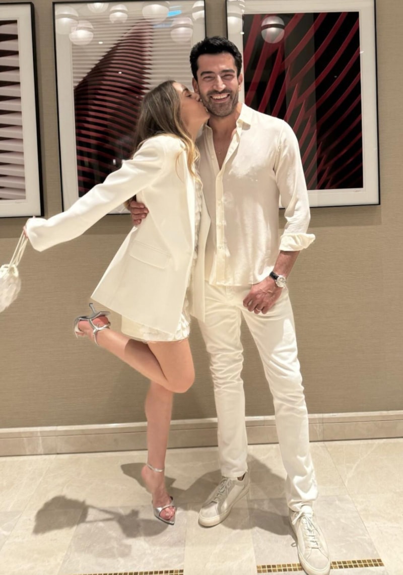 Kenan İmirzalıoğlu ve Sinem Kobal'ın aşk dolu karelerine yorum yağdı. Beyazlar içerisinde kuğuya benzetilen Kobal ise eşini öpmeye doyamadı.