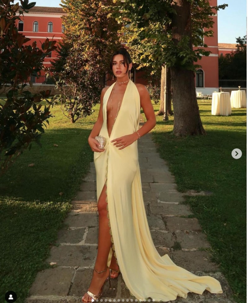 DEKOLTELİ ELBİSE TERCİH ETTİ