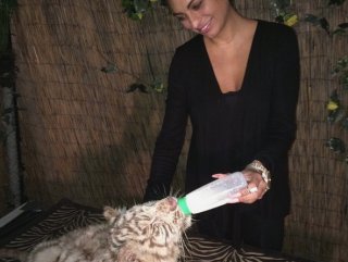 Geçen yıl arkadaşına ait bir çitayı cipiyle gezdirirken fotoğraf paylaşan Yalçın, son olarak bir yavru kaplanı biberonla besledi.
