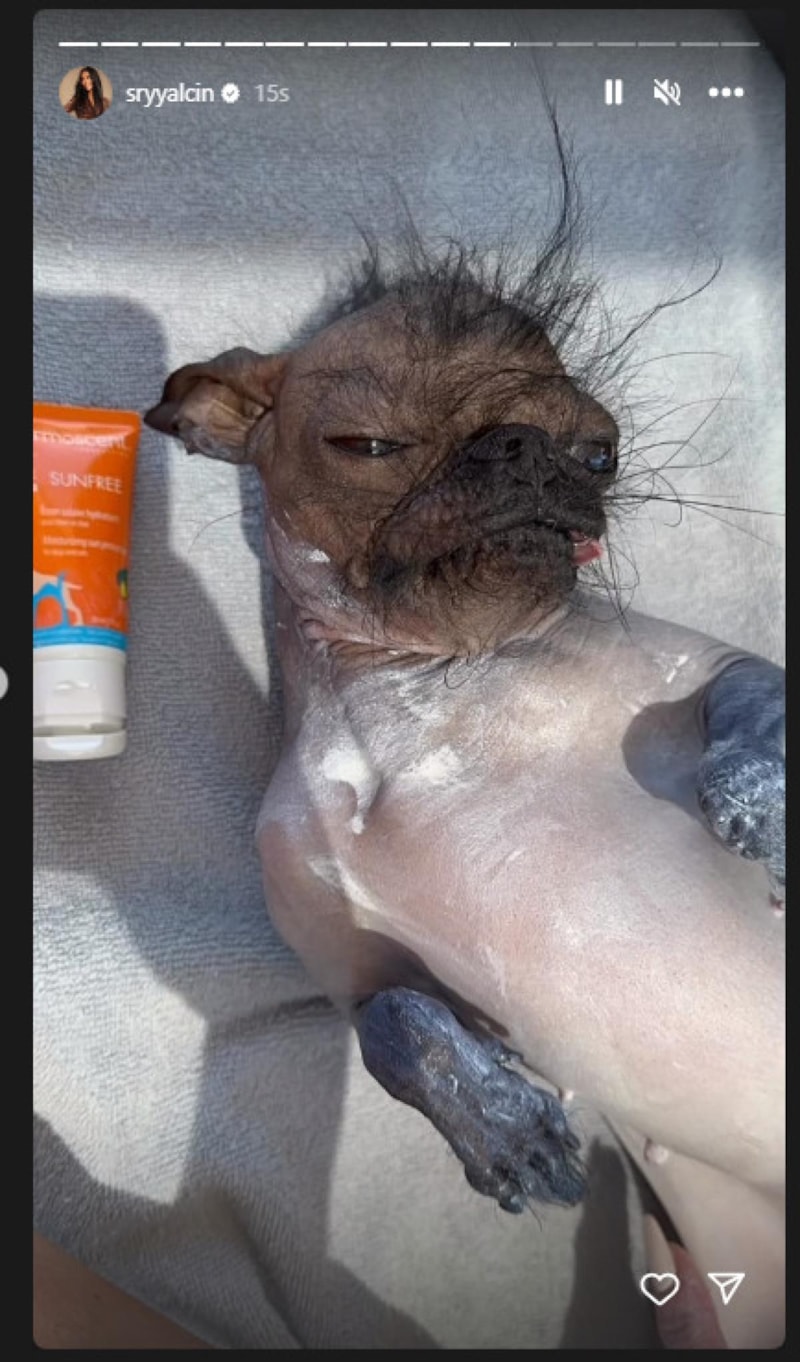 Türkiye'de tatil yapan sosyetik isim Süreyya Yalçın, köpeği Flu’ya güneş kremi sürdüğü anları sosyal medya hesabından paylaştı.