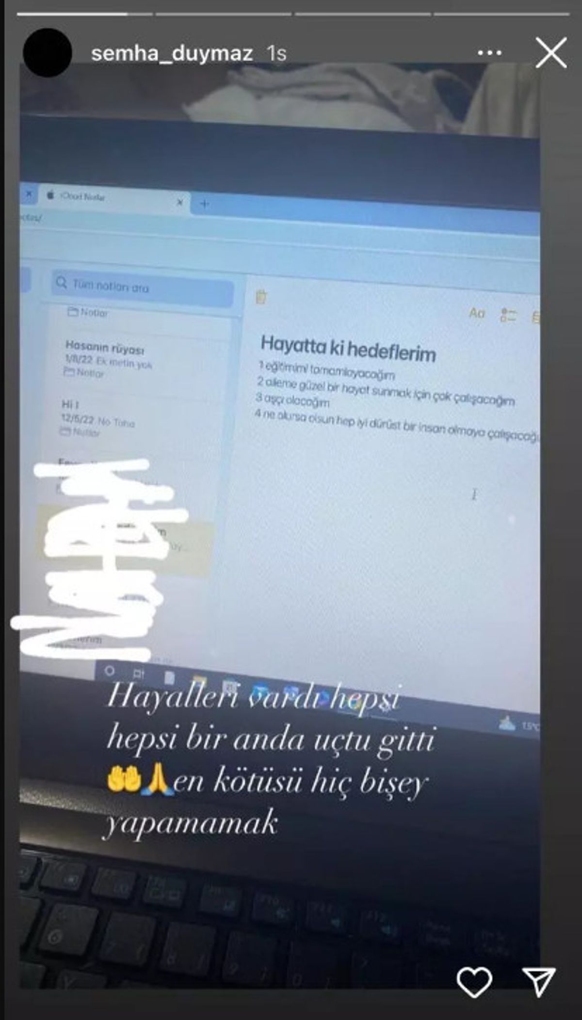 Bu süreçte pek çok tartışma ve spekülasyonla da gündeme gelen Duymaz'ın cenazesinin ardından ablası Semiha Duymaz, yeni bir paylaşımla kardeşini andı.