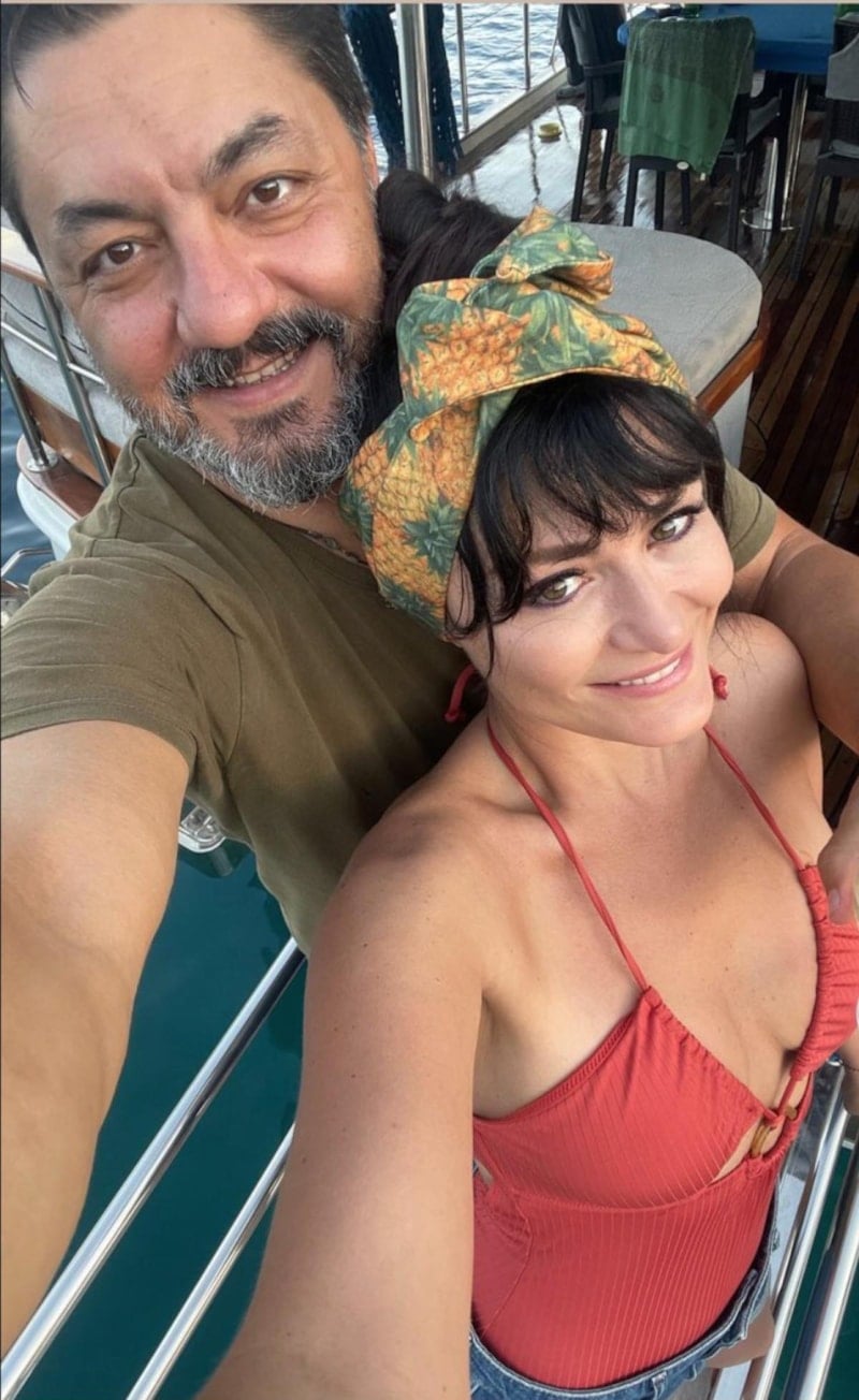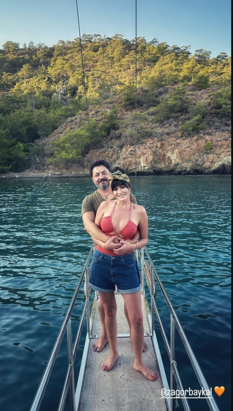 Ünlü oyuncu, eşi Bilgehan Baykal ile birlikte teknede tatilde sarılıp poz verdiği anları sosyal medya hesabından paylaştı.