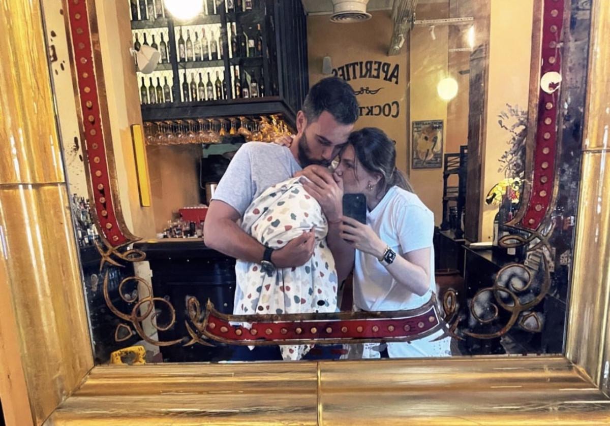 Kızlarını öpmeye doyamayan çiftin fotoğrafları, kısa sürede gündem oldu.