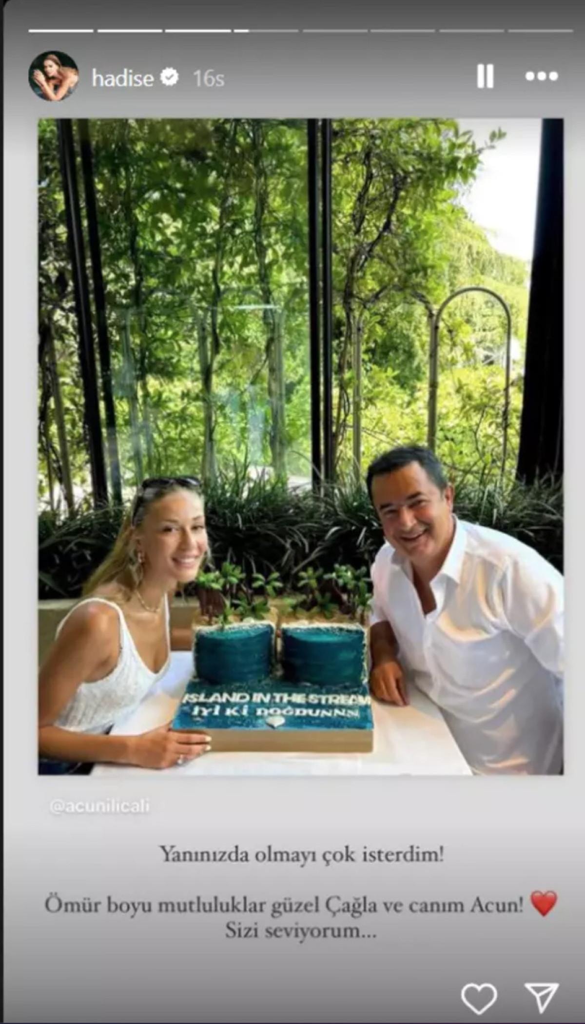 Hadise Acun Ilıcalı ve Ayça Çağla'yı paylaşarak "Yanınızda olmayı çok isterdim. Ömür boyu mutluluklar sizi seviyorum" dedi.
